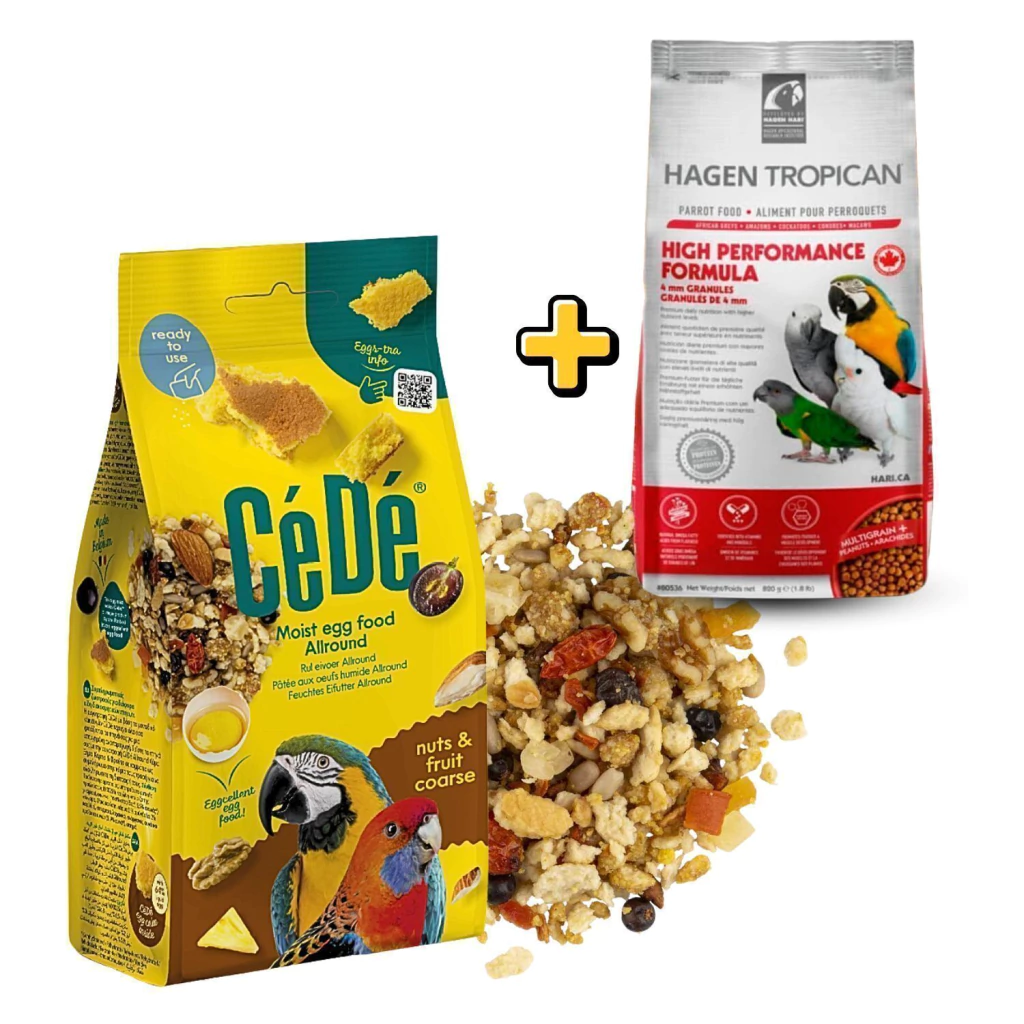 Alimento complementar para diversas espécies de aves ornamentais. A ração CéDé, à base do exclusivo bolo de ovos CéDé, contém tudo o que seus pássaros precisam para uma reprodução bem-sucedida. Dê aos seus pássaros a ração úmida CéDé Allround, juntamente com a ração principal, para completar a dieta.