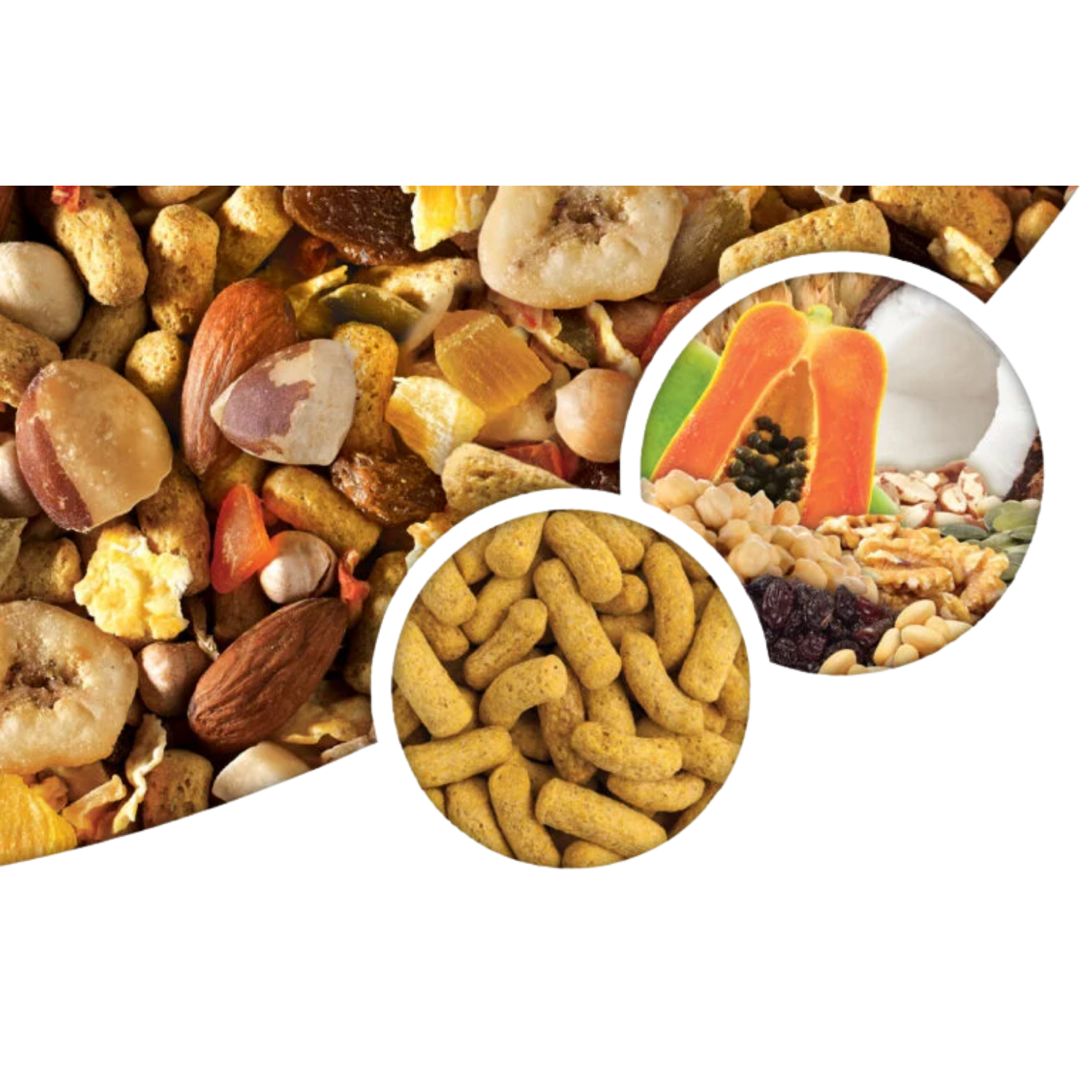 O Tropimix não é feito apenas de sementes; ele é uma dieta multivariada que utiliza grupos de alimentos específicos para simular o que a ave encontraria na natureza: